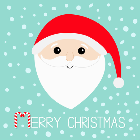 メリークリスマス サンタ クロースの頭顔 ひげ 髭 白い眉 赤い帽子 かわいい漫画面白いお父さん が登場 青色の背景色 グリーティング カード ベクトル図 のイラスト素材 ベクタ Image