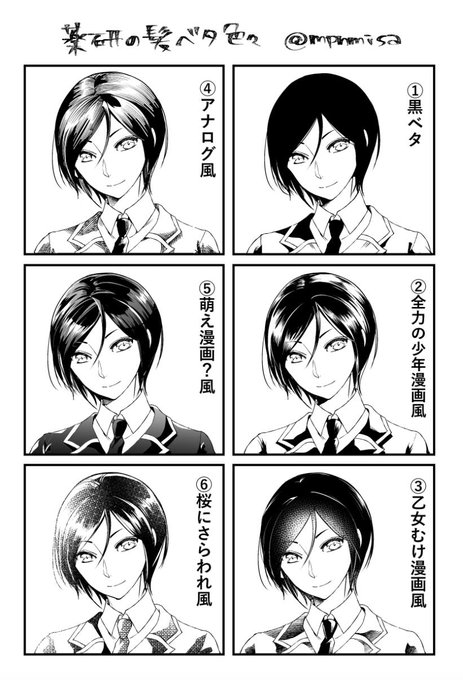 ツヤベタは慣れと経験 今回はツヤベタのコツを3つ紹介しましたが、ツヤベタはとにかく多くの量をこなすことが大切です。モノにするまで時間はかかりますが、今回のコツを参考にして、日々練習を重ねてくださいね。 無料 資料請求最短2日でお届け!この作品 「黒髪のツヤベタ表現の描き分け」 は 「作画資料」「描き方」 等のタグがつけられた「odd」さんのイラストです。 「漫画を描く時の印象を表にしておいた方がわかりやすいだろうと思って作ってみました。サラサラストレートな黒髪の表現をしたいのですが、色んな漫画家黒髪アナログでは筆ペンで髪のツヤベタをしていました。 コミスタで、筆ペンと同じように きれいなツヤができるブラシを作ろうといろいろ試行錯誤しましたが 入抜きの設定を入れてしまうと必要のないところでも抜きで細い線になり、 「速度による入